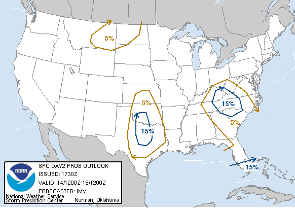 The setup for tomorrow will be very similar to Tuesday. A shortwave trough will move southwestward into the area by tomorrow afternoon...down the back of the current trough. Shear will not be as strong...however, the cyclonic flow will support scattered severe thunderstorms with strong, damaging wind, large hail, plenty of lightning, and heavy rain.